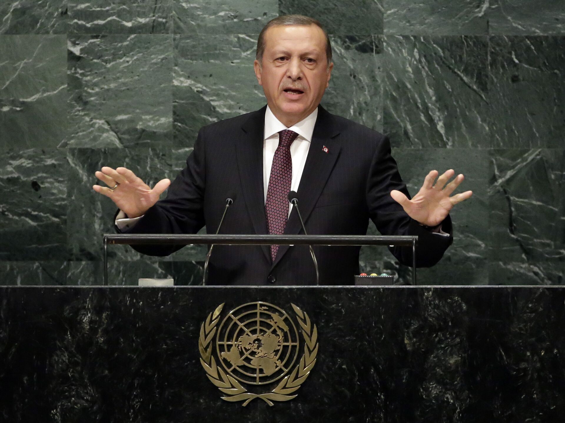 Presiden Turki Recep Tayyip Erdogan, berbicara di Majelis Umum PBB, berterima kasih kepada Presiden AS Donald Trump atas bantuan dalam menormalkan RIA Novosti, 09/23/2025