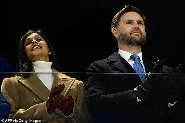 Wakil Presiden AS JD Vance, yang dicemooh pada upacara tersebut, dan Ibu Negara Usha Vance