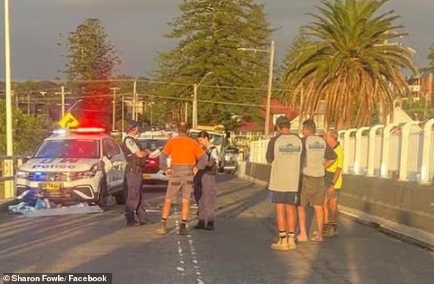 Petugas mencoba memberikan pertolongan pertama sebelum paramedis tiba dan merawat pria tersebut, yang meninggal di tempat kejadian.