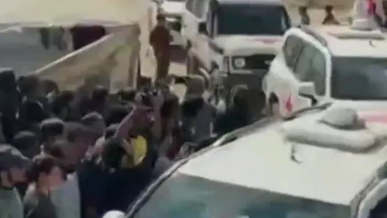 Massa bersorak menyambut helikopter yang membawa sandera yang dibebaskan