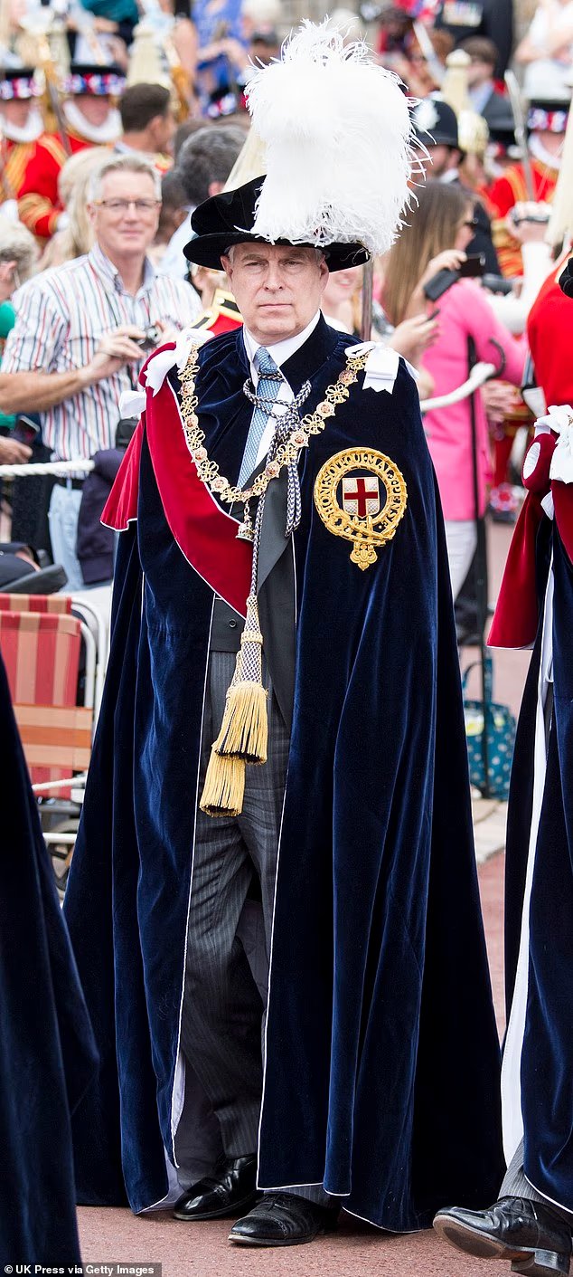 Pangeran Andrew di Order of the Garter pada bulan Juni 2015 di luar Kapel St George di WIndsor