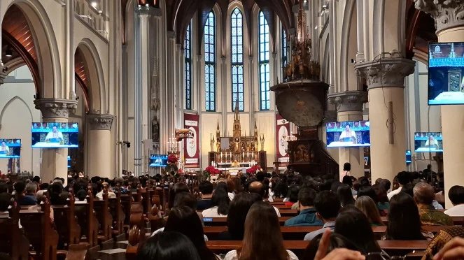 Suasana misa malam Natal di Gereja Katedral Jakarta