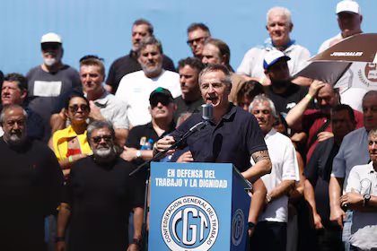 - penyelenggara : Dalam pertemuan yang memunculkan usulan mobilisasi pada hari Rabu ini, para peserta Gerardo Martinez (Uocra), Hector Daer (Kesehatan), José Luis Lingeri (Pekerjaan Sanitasi), Sergio Romero (UDA), Julio Piumato dan Maia Volcovinsky (Peradilan). Para legislator yang berasal dari serikat pekerja juga hadir, seperti wakil nasional Sergio Palazzo (La Bancaria) dan Hugo Moyano (putra), penasihat hukum CGT.