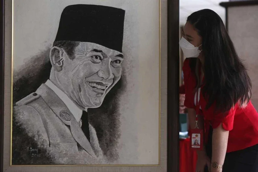 Lukisan Bung Karno di Plaza Proklamasi Gedung Graha Wiyata, Universitas 17 Agustus 1945 (Untag), Surabaya, Jawa Timur, Selasa (6/ 4/2021 Foto/Dok SindoNews