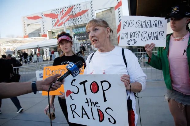 Otoritas federal mengatakan ICE tidak akan hadir di Super Bowl. Tapi Maxine Doogan, yang menggambarkan dirinya sebagai “pelacur yang bekerja selama 30 tahun”, mengatakan dia tidak percaya, dan menambahkan bahwa kata-kata pada AB 379 hanya menambah kekhawatiran.