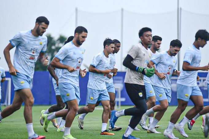 Skuad Persib Bandung menjalani sesi latihan. Foto: Persib.