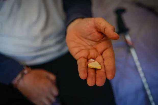 Chris Wilder, yang merupakan mantan kepala Yayasan Kesehatan Lembah, menunjukkan bekas luka di mana dokter harus memotong sepotong tengkoraknya karena otaknya membengkak selama stroke di rumahnya di Los Gatos, California, pada hari Kamis, 21 Agustus 2025. (Shae Hammond/Bay Area News Group)