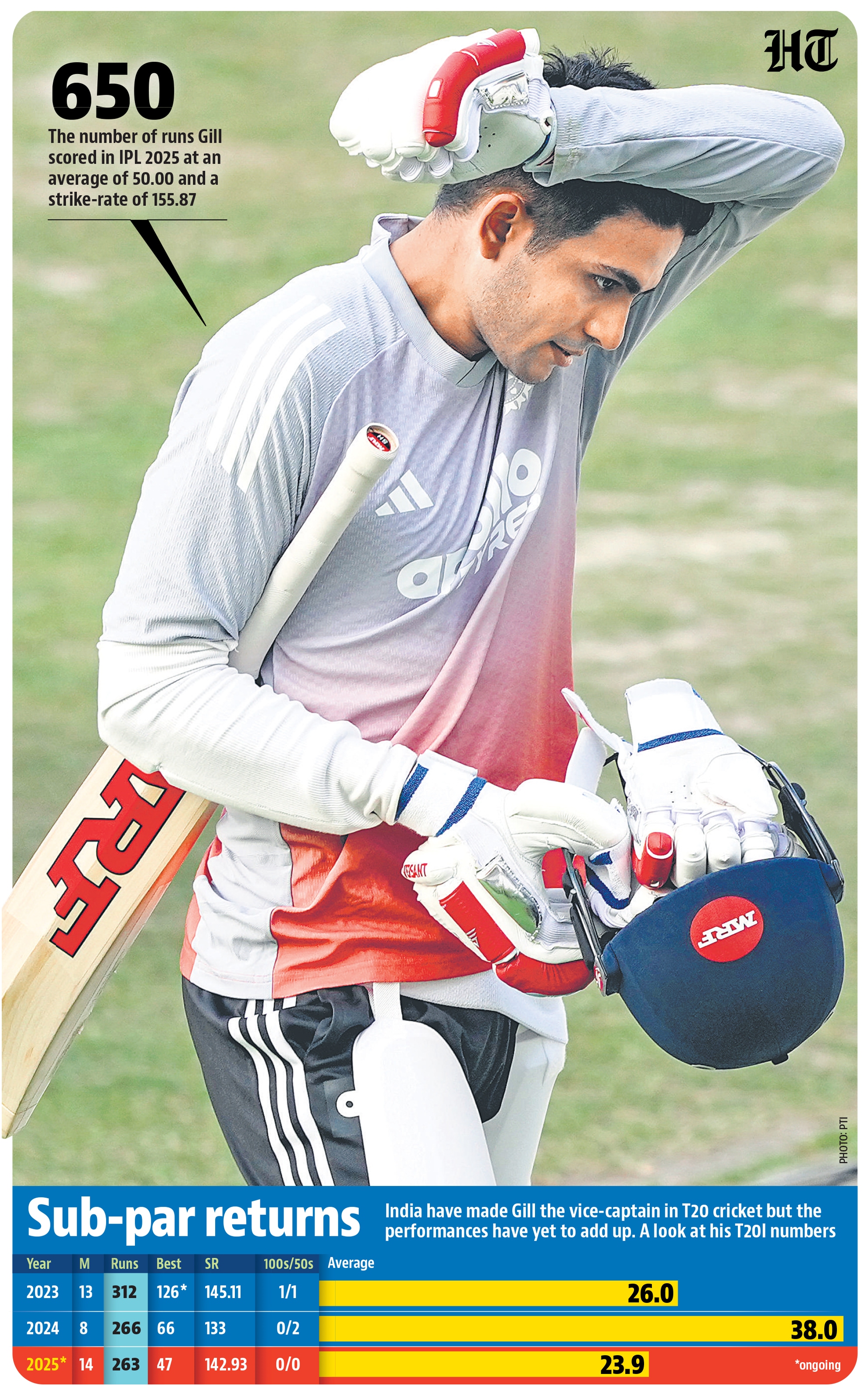 Gill, bisa ditambahkan, telah menunjukkan bahwa dia bisa meraih kesuksesan dalam format T20. Tiga tahun terakhirnya di IPL telah membuatnya mencetak 890 run pada tahun 2023), 426 (2024) dan 650 run (2025) dan termasuk yang terbaik di negara ini. Dia juga berusaha mengatasi masalah strike rate yang mengganggu tahun-tahun awalnya di liga.