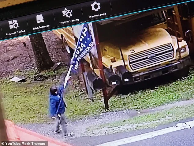 Mark Thomas mengatakan dia menangkap tersangka pada rekaman pengawasan merobek spanduk ‘Trump 2024 dari salah satu busnya yang diparkir di luar sebelum mereka bertukar tembakan.