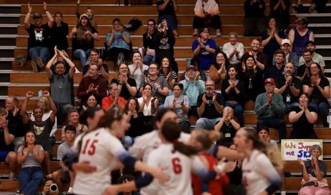 Beth Bourne, presiden kelompok Yolo County Moms for Liberty dan seorang aktivis anti-trans yang vokal, bertukar kata dengan beberapa pengunjuk rasa tandingan saat mereka meneriakkan “Cinta menang” sebagai tanggapannya. Adegan menghilang saat kedua kelompok masuk ke dalam gym untuk pertandingan, yang dimenangkan American River dalam empat set.