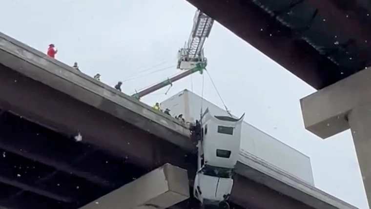 Pengemudi diselamatkan dari truk yang tergantung di jembatan layang West Virginia