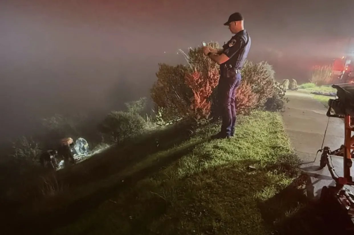 Setelah kendaraan itu ditemukan, petugas pemadam kebakaran meminta sumber daya tambahan, termasuk truk tangga, kepala batalion, dan bantuan dari polisi Santa Rosa. Pengemudi adalah satu-satunya penumpang kendaraan tersebut.