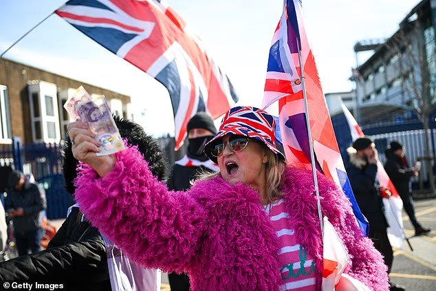 Pengunjuk rasa anti-imigrasi (foto) berkumpul di luar markas besar RNLI di Poole, menuntut layanan tersebut berhenti membantu para migran yang melintasi Selat Inggris