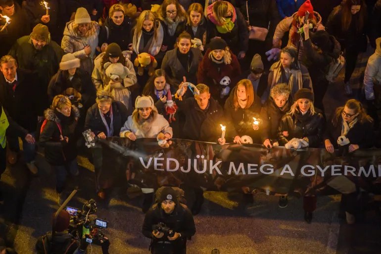 Pada hari Sabtu, ribuan pengunjuk rasa berjalan melalui jalan-jalan beku di Budapest di belakang spanduk bertuliskan “Lindungi anak-anak!” dan meminta pemerintah untuk mengambil tindakan lebih lanjut terhadap para pelakunya. Beberapa orang juga membawa mainan lunak dan obor sebagai bentuk solidaritas terhadap korban kekerasan fisik dalam kasus yang terjadi beberapa tahun lalu.