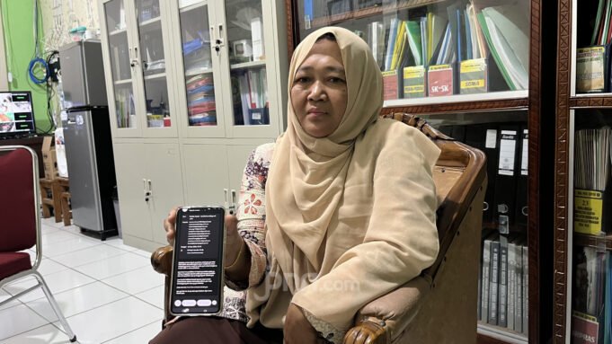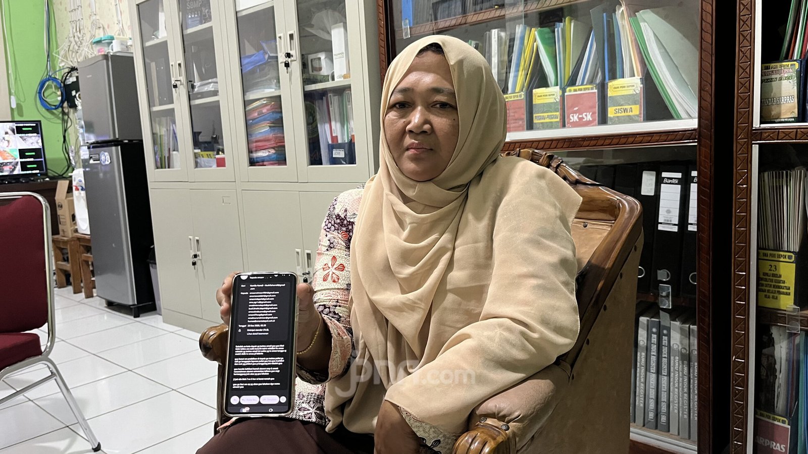 Kepala SMA PGRI 1 Depok, Nina Marliana saat menunjukan teror yang dikirim melalui email. Foto : Lutviatul Fauziah/jpnn