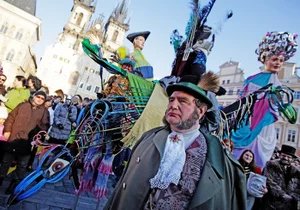 Parade karnaval melewati Hustopeče di wilayah Břeclav.