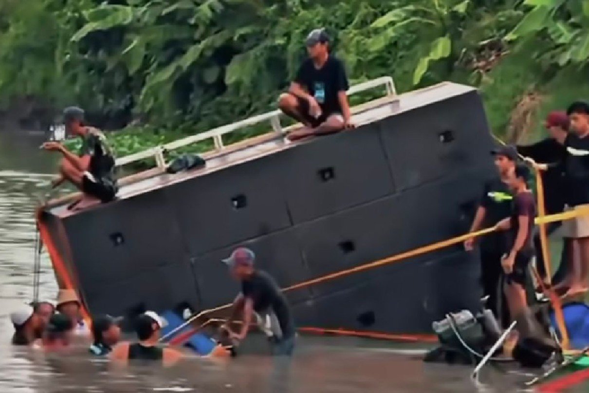 “Berat sound-nya saja sekitar satu heap. Ditambah yang naik mungkin 10 -an orang. Begitu miring, alat-alat langsung ikut tenggelam,” jelasnya.