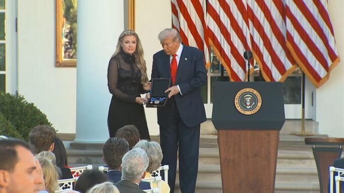 Presiden Trump pada hari Selasa secara anumerta menganugerahkan penghargaan sipil tertinggi kepada aktivis konservatif Charlie Kirk, Presidential Medal of Liberty, dan menyerahkan medali tersebut kepada jandanya, Erika Kirk.