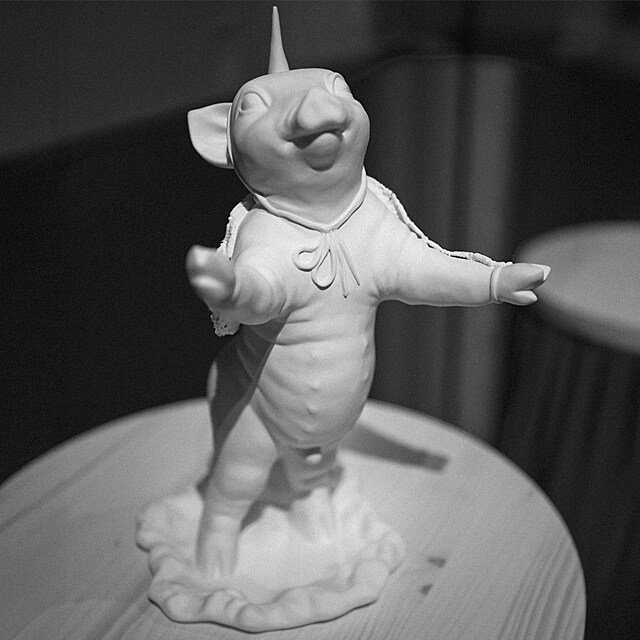 Dia benar-benar membiarkan imajinasinya berbicara dalam hal ini. Potongan porselen pertama dari seri Farma zvat dipamerkan pada bulan Juni ini di Designblok di Letohrdek oleh rumah kerajaan Anna dengan merek High Craft. Kemudian, di bawah pengawasannya, babi dan seekor domba berangkat untuk menemukan diri mereka sendiri. Melihat patung-patung yang disusun di atas meja bundar dengan taplak meja panjang berwarna biru, dia tahu bahwa patung-patung itu dibuat dengan baik.