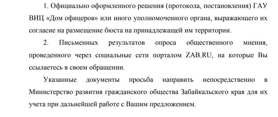 Sekretaris pertama Komite Regional Trans -Baikal dari Partai Komunis Partai Komunis, Yuri Gaiduk, mengatakan bahwa pihak berwenang tidak ingin membangun patung Joseph Stalin di taman House of Officer di Chita, mengiriminya jawaban yang tidak diketahui oleh para komunis bagaimana bereaksi. Pada 22 September, Haiduk berbagi dengan koresponden Chita.ru.
