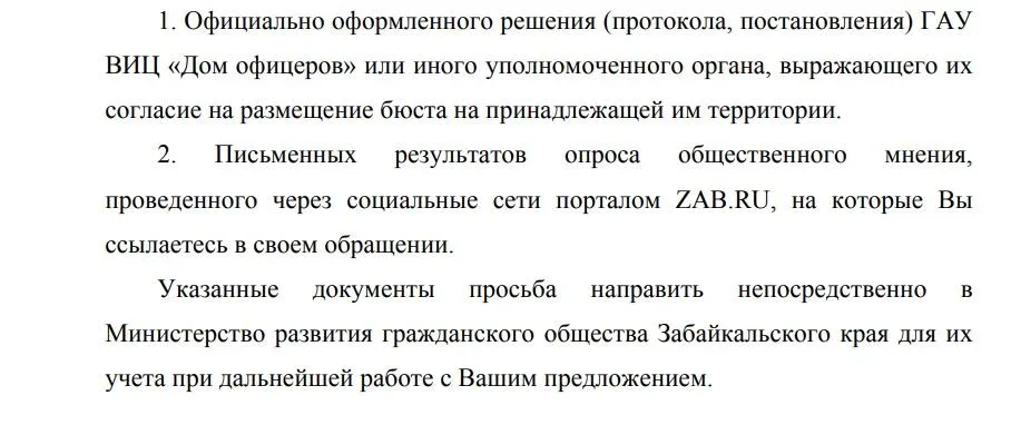 Selain itu, menurut Gaiduk, kementerian menanyakan hasil tertulis dari jajak pendapat publik, yang dilakukan di portal informasi zab.ru.