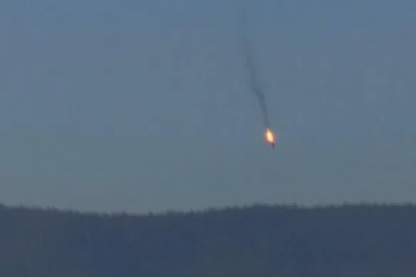 2015: Turki F- 16 menembak jatuh seorang pejuang Rusia setelah menyimpang ke wilayah udara Turki. Kredit: Haberturk TV