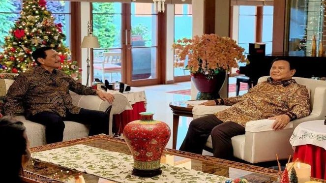 “Senang sekali sore ini Presiden Prabowo Subianto dan putra semata wayangnya, Mas Didit menyempatkan hadir ke kediaman kami untuk berbagi kebahagiaan di hari Natal,” kata Luhut.