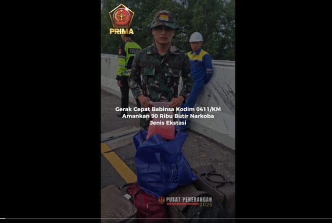 “Babinsa Koramil 411-11/Terbanggi Besar, Sertu Eko Wahyudi, bersama Serda Juntak berhasil mengamankan sekitar 90.000 butir ekstasi setelah menemukan enam tas mencurigakan di lokasi kecelakaan sebuah SUV di Tol Sumatra KM 136, Lampung,” tulis keterangan video itu yang dikutip JPNN.com, Jumat (21/11).