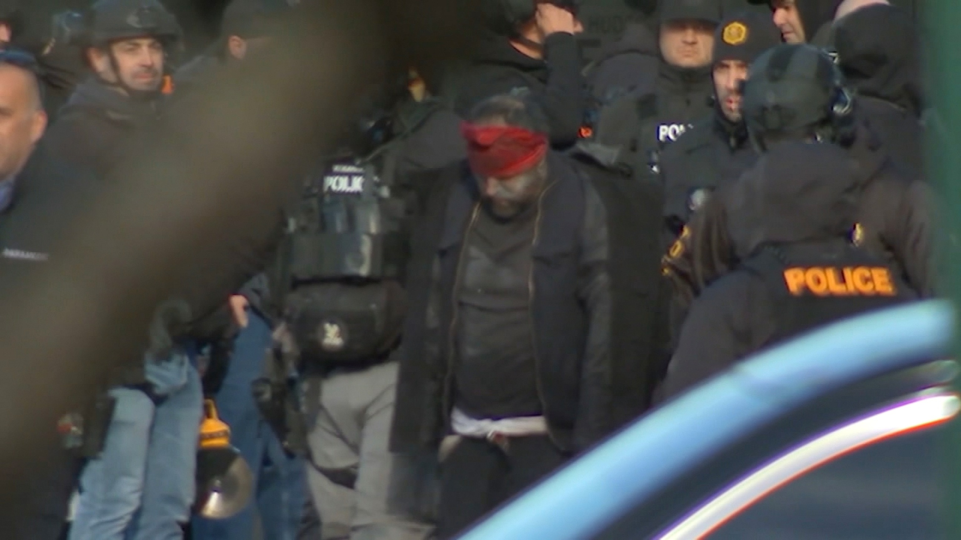 Anggota SWAT menahan tersangka di Kearny, New Jacket, 21 Desember 2025