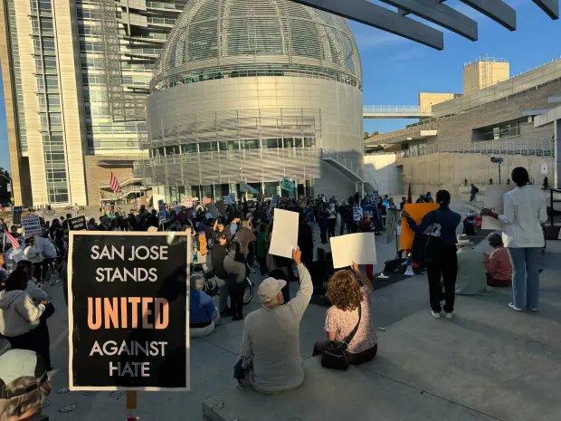 Di depan Balai Kota San Jose, para pengunjuk rasa membawa poster bertuliskan “hak penuh untuk semua imigran” dan “hapuskan ICE.” Yang existed berbaris dan ikut meneriakkan “ketika ICE muncul, jangan membeku” dan “dari Chicago ke Teluk, para imigran akan tetap tinggal”.