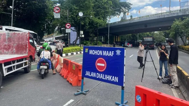 Jalan Gatot Subroto depan DPR ditutup buntut demo buruh