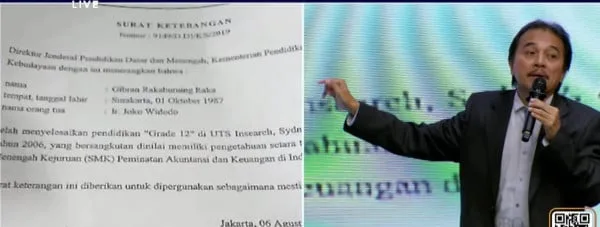 Awalnya, Roy Suryo memaparkan hasil publikasi resmi tentang riwayat peserta Pilpres 2024. Dalam data tersebut, Gibran tercatat lulusan S1 di Singapura dan S2 di Sydney.