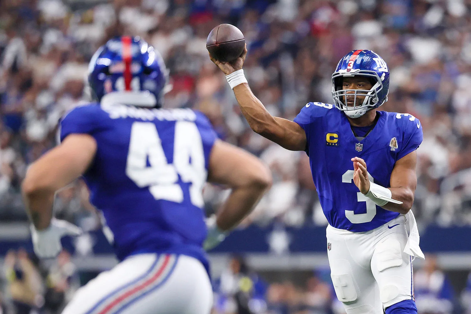 Setelah menghabiskan minggu sebelumnya mendengar panggilan untuk pekerjaannya, quarterback New york city Giants Russell Wilson mengeluarkan sanggahan yang spektakuler pada hari Minggu di Dallas.