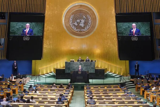 Netanyahu, yang menghadapi surat perintah penangkapan pengadilan pidana internasional atas dugaan kejahatan perang di Gaza, menyampaikan pidatonya kepada audiensi yang jarang karena banyak delegasi meninggalkan Aula Majelis Umum sebagai protes ketika ia berjalan menuju panggung.