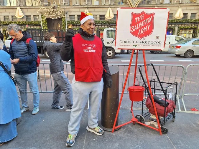 Dengan menggunakan pot merah tradisional dan suara lonceng yang khas, para “tentara” ini berlokasi strategis di kawasan tersibuk, termasuk di sekitar jalan raya mewah di Big Apple, meskipun mereka juga melakukan kampanye di beberapa negara bagian.