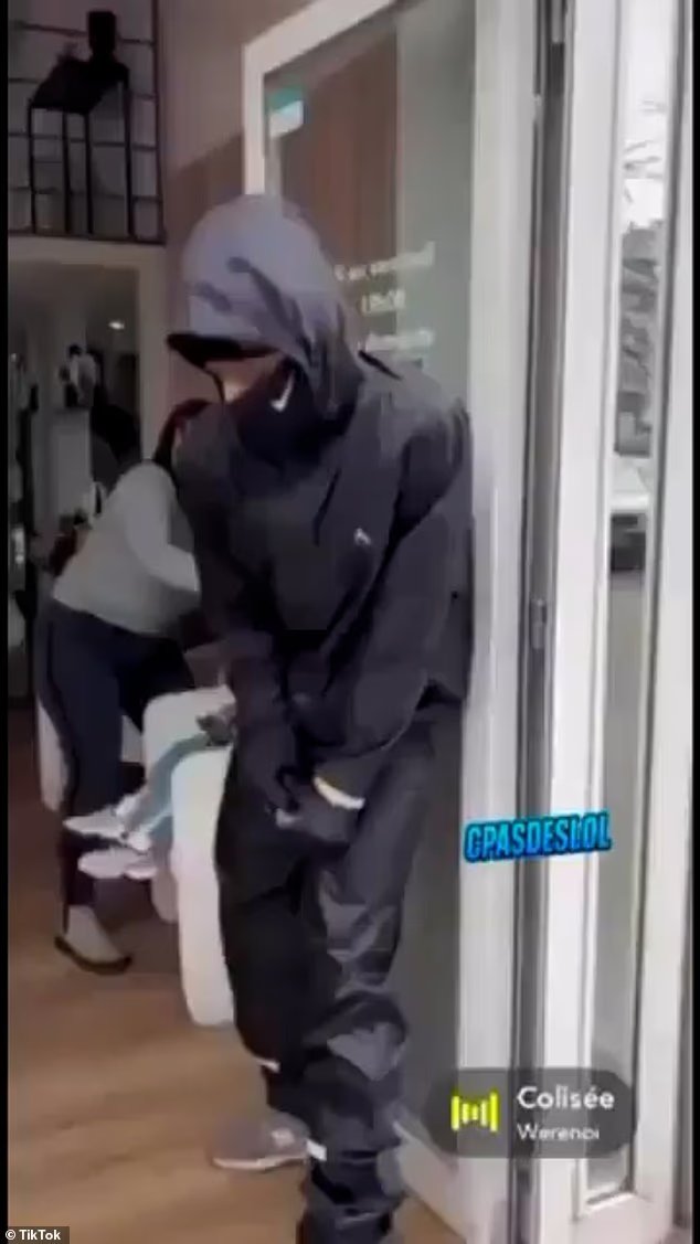 Rekaman mengerikan menunjukkan saat pria tersebut memaksa masuk ke salon di Grenoble setelah berkelahi dengan seorang wanita di pintu masuk.