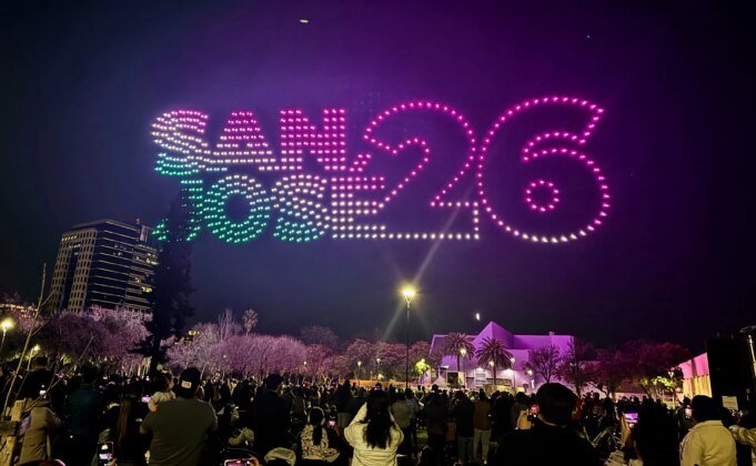 Jika Anda melewatkan pertunjukan drone pertama, akan ada pertunjukan drone lainnya di Discovery Meadow pada Jumat malam, dimulai sekitar pukul 22.15 Meskipun hari Senin menekankan budaya San Jose, pertunjukan hari Jumat akan mengacu pada sejarah olahraga kota tersebut. Gangguan selama pertunjukan hari Senin – termasuk suara yang hilang selama beberapa menit terakhir dan kode QR yang tidak berfungsi – harus diselesaikan pada Jumat malam.