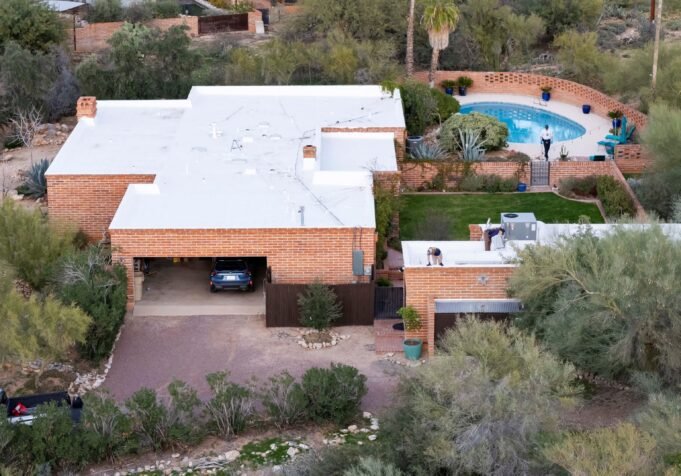 Pemandangan drone menunjukkan penyelidik menggeledah rumah Nancy Guthrie, ibu dari jurnalis AS dan pembawa acara televisi Savannah Guthrie, 84 tahun, yang hilang dari rumahnya di Tucson, AS, 6 Februari 2026
