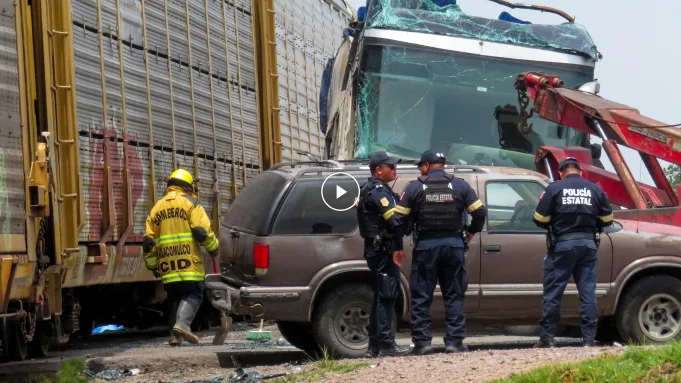 Sepuluh orang tewas dan 61 terluka pada hari Senin ketika sebuah kereta kargo menabrak bus penumpang double-decker di Meksiko tengah.