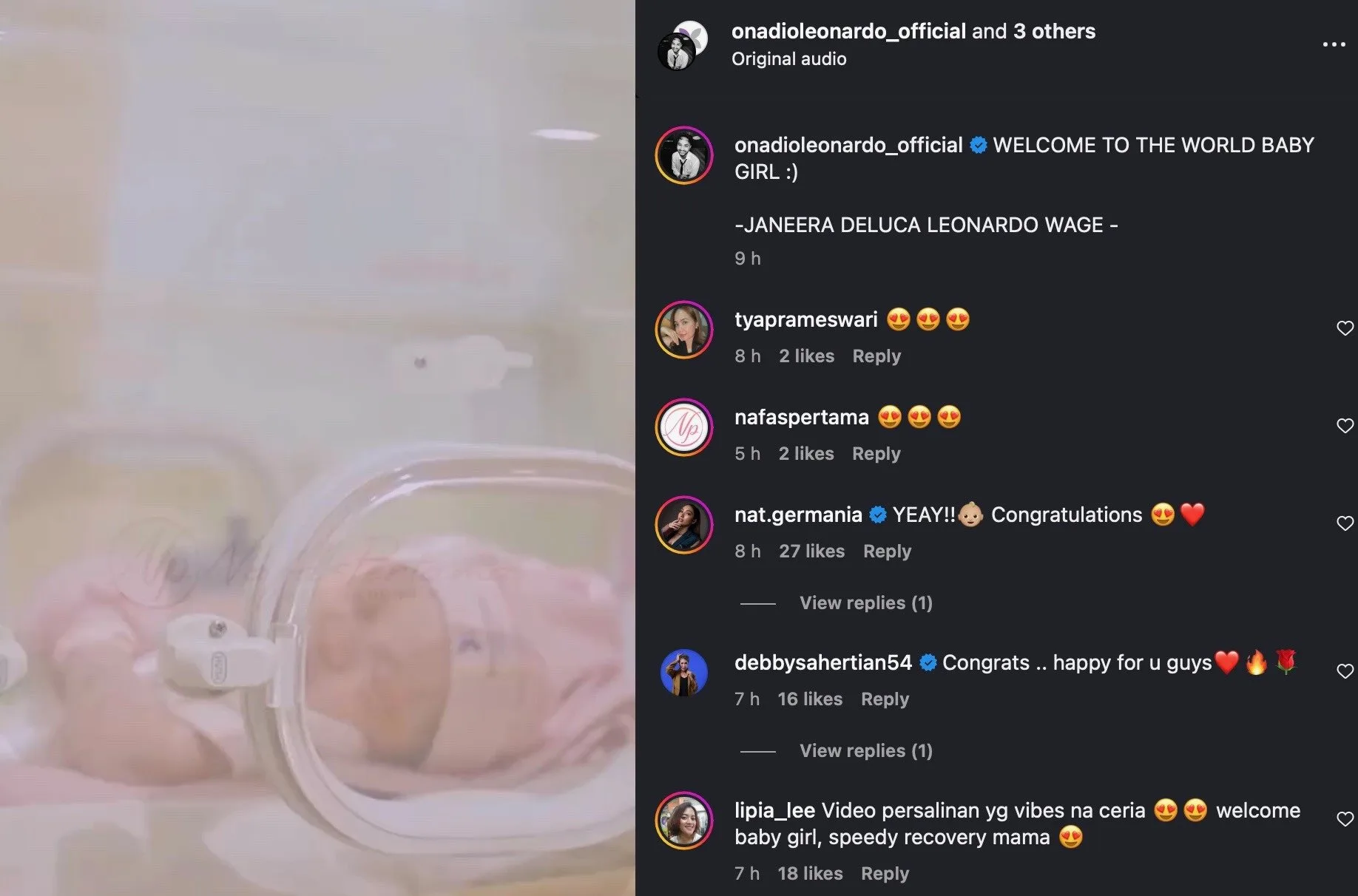 Perjuangan itu kini terbayar dengan lahirnya Janeera, yang membawa warna baru dalam kehidupan rumah tangga mereka. Onad sendiri terlihat begitu siaga mendampingi sang istri. Beberapa jam sebelum persalinan, ia sempat mengunggah momen kebersamaan di rumah sakit sambil memberikan semangat.