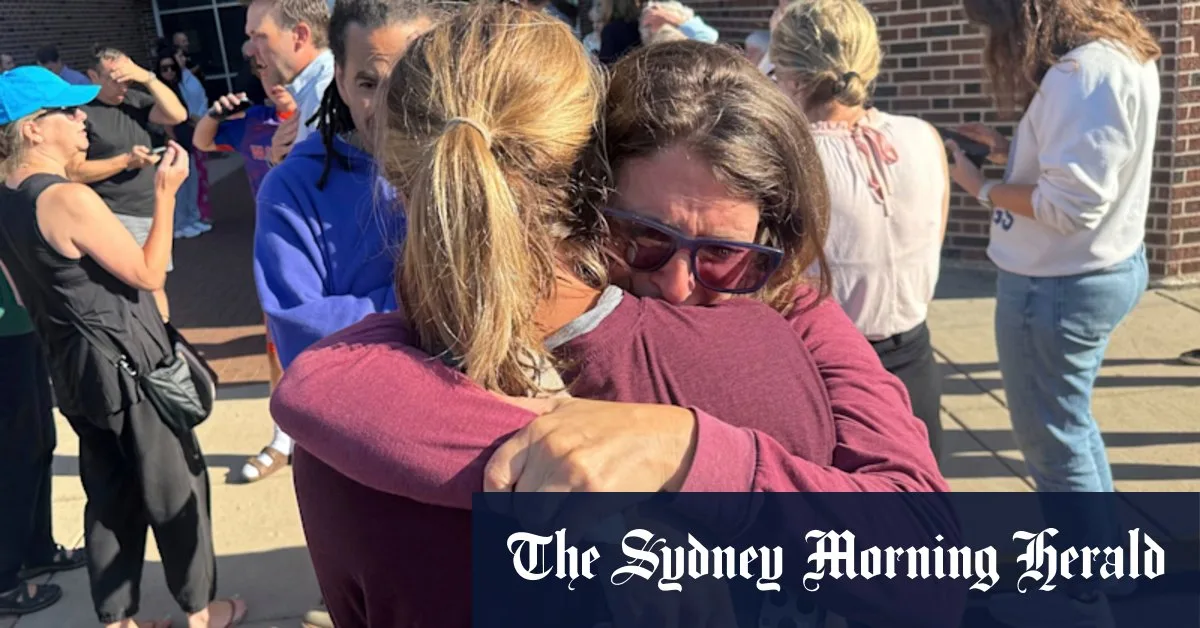 Sekolah itu dievakuasi, dan keluarga siswa kemudian diarahkan ke “zona reunifikasi.” Di luar, di tengah kehadiran penegakan hukum berseragam yang berat, adalah anak -anak berseragam dengan kemeja atau gaun hijau gelap mereka. Banyak yang mengalir keluar dari sekolah dengan orang dewasa, memberikan pelukan yang tersisa dan menyeka air mata.