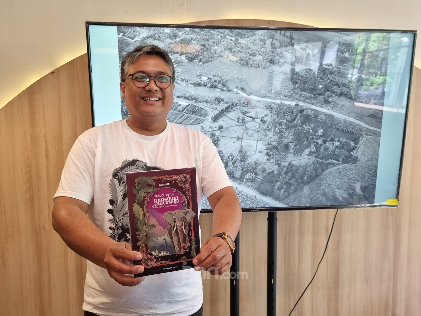 Sejarawan yang juga penulis buku ‘Kado untuk Bandung: Taman Menjadi Kebun Binatang’, Yudi Hamzah, dalam sebuah diskusi di Kota Bandung, Rabu (14/1/2026). Foto: Nur Fidhiah Shabrina/JPNN.com