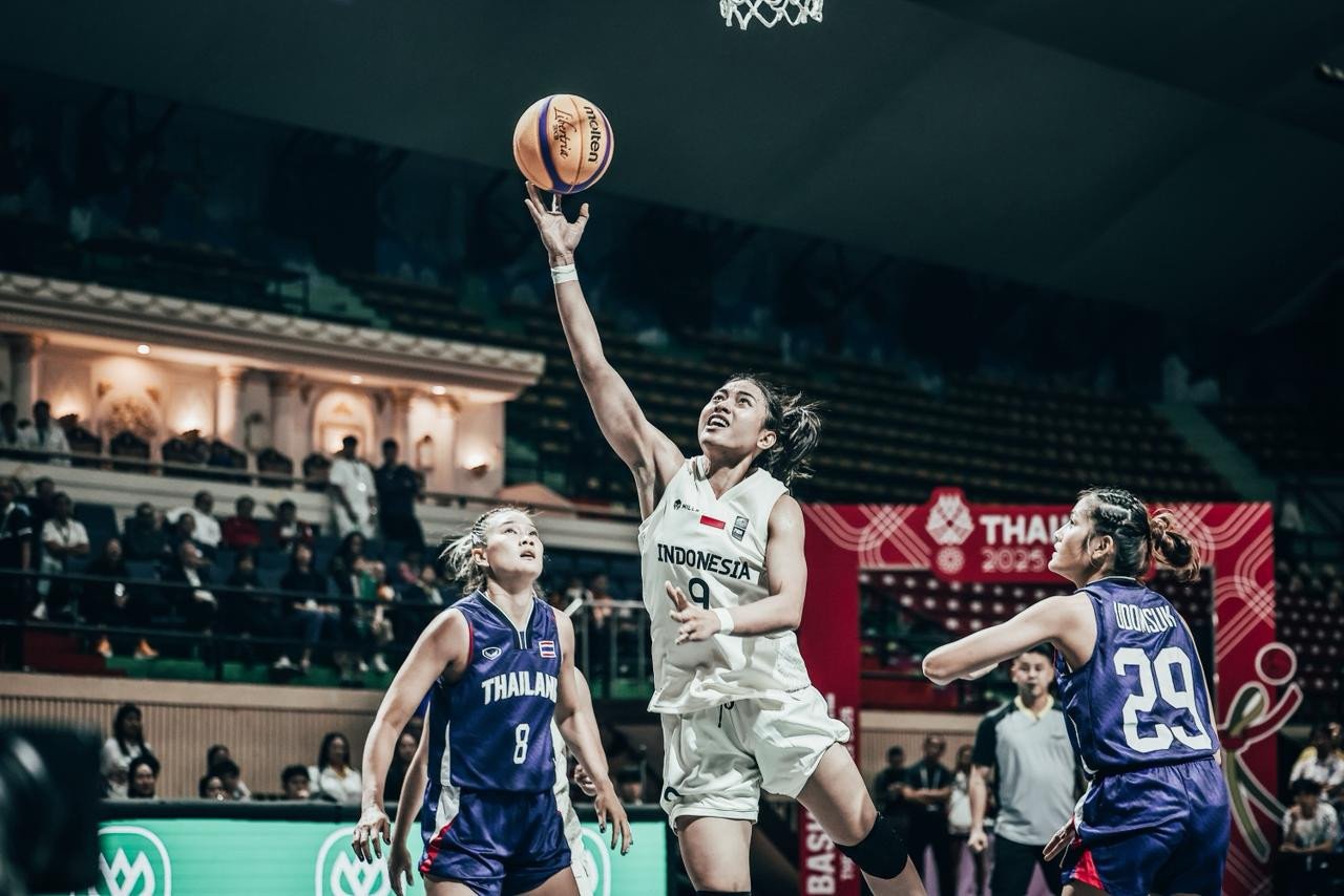 Pebasket Ayu Sriartha saat berlaga melawan Thailand dalam ajang SEA Games 2025 di Nimibutr Arena, Bangkok, Kamis (11/12). Foto: Dok. Perbasi/Ariya Kurniawan