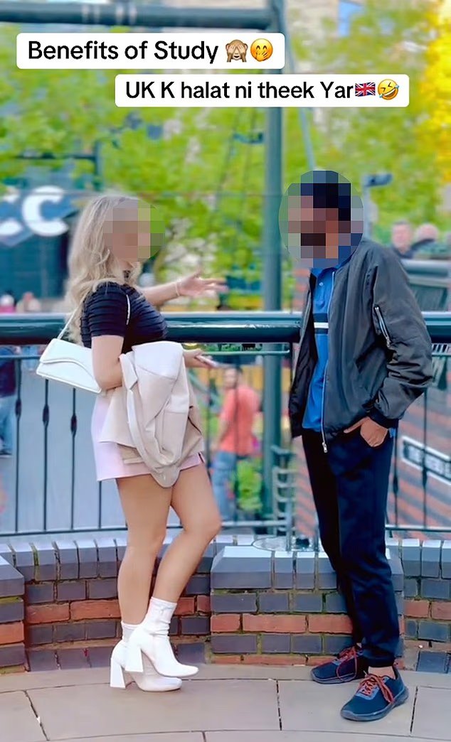 Para wanita tersebut, yang tampak bersemangat setelah minum, berpelukan tanpa curiga dengannya sebelum melanjutkan– tetapi video clip yang kemudian dia posting tentang percakapan singkat ini diberi judul yang mengganggu dengan emoji tertawa dan kata-kata: ‘Beremigrasi dengan visa belajar.’