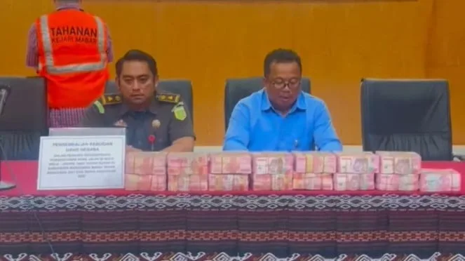 SB merupakan salah satu tersangka dalam kasus dugaan korupsi pembangunan jalan Golowelu–Orong yang menimbulkan kerugian negara mencapai Rp1,8 miliar. (Vera Bahali/tvOne/Labuan Bajo)