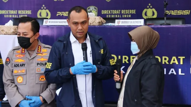 Wakil Direktur Reserse Kriminal Umum Polda Metro Jaya, AKBP Putu Kholis Aryana (tengah)