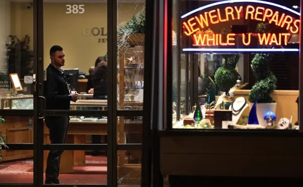 Perampokan di Gold Rush Jewellers di 385 South McDowell Blvd. dilaporkan sekitar pukul 16:46 hari Sabtu ke polisi Petaluma, kata badan tersebut. Menurut penyelidikan awal, enam orang yang mengenakan masker ski memasuki toko dengan membawa palu, semprotan merica, dan setidaknya satu senjata api. Satu orang menodongkan senjata ke empat karyawan tersebut sementara yang lainnya menghancurkan etalase dan mengambil perhiasan.