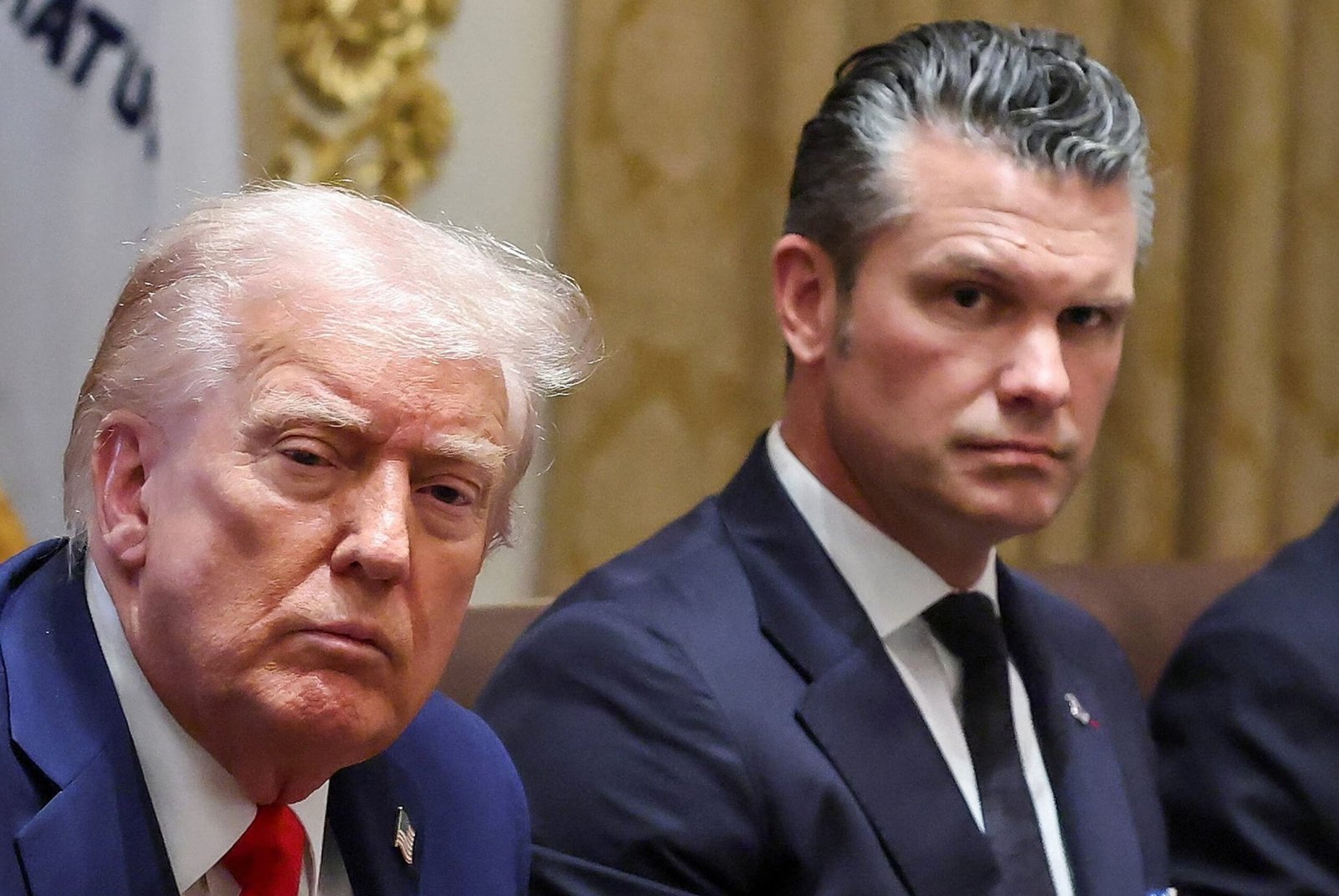 Presiden Donald Trump dan Menteri Pertahanan Pete Hegseth menghadiri rapat kabinet di Gedung Putih di Washington, 9 Oktober 2025.