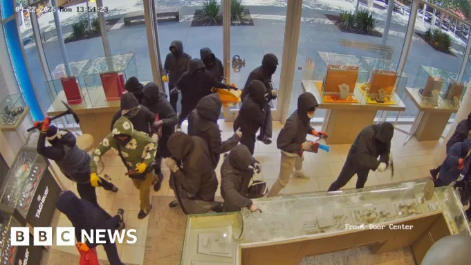 Sekelompok hampir 25 orang menggeledah toko perhiasan di San Ramon, California. Hampir $ 1 juta barang dagangan dicuri selama perampokan bersenjata, menurut Departemen Kepolisian San Ramon. Setidaknya tiga orang dipersenjatai dengan senjata sementara yang lain membawa campuran linggis dan pickaks. Polisi menangkap enam orang dewasa dan satu di bawah umur sehubungan dengan perampokan. Tidak ada cedera yang dilaporkan.