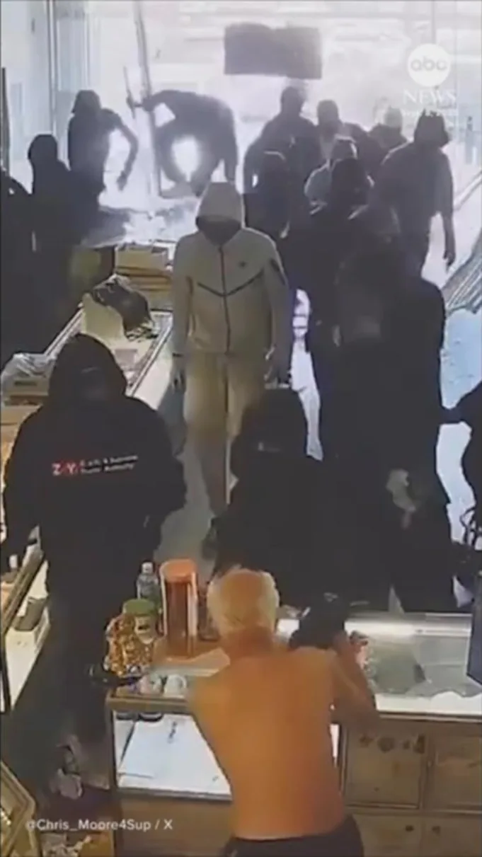 Polisi sedang menyelidiki setelah lebih dari selusin perampok bertopeng mengerumuni toko perhiasan di San Jose, The Golden State.